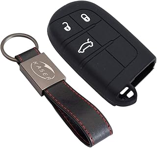 Housse étui en Silicone pour Clé Jeep Chrysler – Coque Cover Porte-Clés pour Jeep Chrysler Dodge Cherokee Grand Cherokee Renegade Delta Durango Ypsilon Protection Télécommande Voiture (Noir)