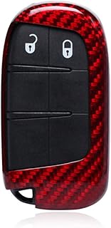 M.JVisun Coque de protection en fibre de carbone véritable pour clé de voiture Jeep Grand Cherokee SRT Cherokee Renegade Boussole Porte-clés – Rouge