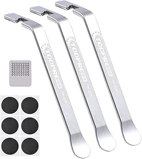 KECRULV Kit de Réparation de Pneu de Vélo, Inclure 3 Pièces Démonte Pneu de Vélo Acier Inoxydable avec 6 Pièces Patchs sans Colle de Vélo et Râpe en Métal, Trousse à Outils de Réparation de Vélo