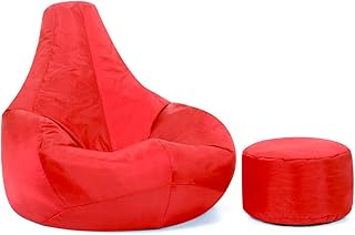 Pouf Designer Inclinable de Jeux assorti avec Repose-Pieds GRATUIT – Pouf Poire pour l’intérieure et l’extérieure résistant à l’eau par Bean Bag Bazaar® (Rouge)