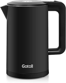 Gotoll Bouilloire Électrique 1,7 L Bouilloire Electriques INOX 1800W Vintage sans Fil Bouilloire Noire de Voyage sans BPA Ébullition Rapide