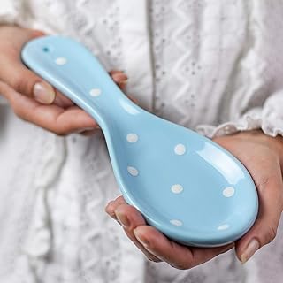 City to Cottage | Repose cuillère | bleu ciel à pois blancs en céramique fait et peint à la main