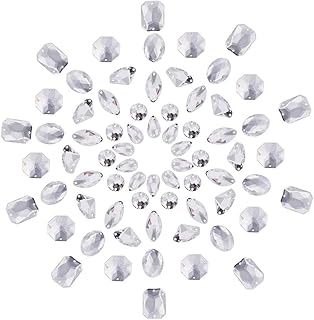 PandaHall Elite - 150Pcs Strass Acrylique Links 2 Trous Rhinestone à Coudre Boutons en Cristal pour la Décoration de Vêtements Bricolage, Dos Plat, Couleur Melangee, 12-25x8-15x3-5mm, Trou: 1mm