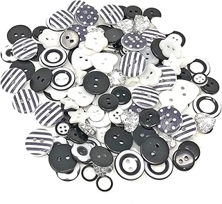 Lot de 150 boutons assortis en bois, acrylique et résine - Noir/blanc - Pour décoration de fabrication de cartes