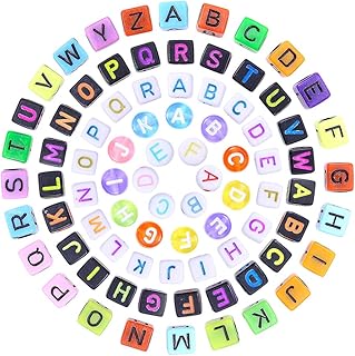 nbeads 1000 Pcs Alphabet Perles, Acrylique Lettre AZ Cube Perles avec 10m Fil de Cristal pour Enfants Bricolage Fabrication de Bijoux Porte-Clés