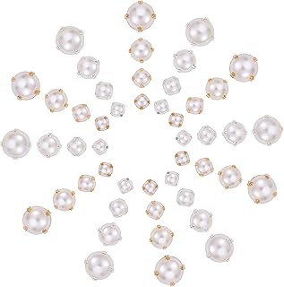 nbeads Coudre des Perles Nacrées, 400 Pcs 4 Tailles Argent et Or Acrylique Imitation Perle Demi-Ronde Montée Bijoux Perles pour DIY Fabrication de Vêtements