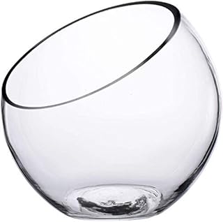 Vase en verre transparent / terrarium en verre / bocal à bonbons - Bol à bulles coupé, bol à poisson et terrarium pour plantes, vase à globe incliné, vase à fleurs rond, lot de 1 (17,8 x 17,8 cm)