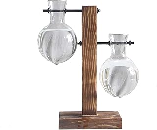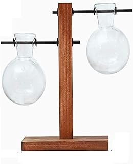 beijieaiguo Hydroponique Vintage Vase Pot De Fleurs Transparent Tabletop Ampoule De Verre Vase De Bureau en Verre Suspendu Balance Planteur Ampoule Vase avec Cadre en Bois Style 2
