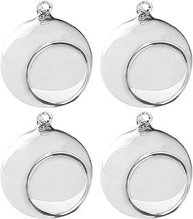 Gosear Vase Suspendu en Verre, 4 PCs Verre Bougeoir, Transparent Boule Miniature Garden Planters Plant Glass Terrarium Home Indoor Garden Decor DIY Gifts 6 cm