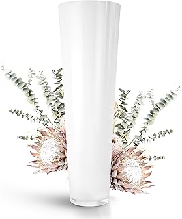 Glaskönig Vase en Verre Cylindre Conique Blanc 43cm Ø 18cm. Vase Sol en Verre Grand Vase déco Grand Moderne Vase en Verre Rond comme Vase à Fleurs Grand Vase Sol Blanc en Verre opalin