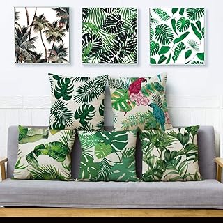 Housse de coussin 5 ensembles de lin câlin taie d'oreiller feuilles tropicales canapé décoration de la maison jet de taie d'oreiller impression usine feuille verte taie d'oreiller tissu 45X45Cm