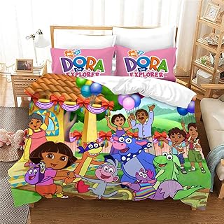 WMZ-SC Dora l'exploratrice Housse de Couette Enfant Parure de lit Fibre de Coton avec Fermeture éclair Comprend Une Housse de Couette et Une taie d'oreiller (6,140x200cm-2pcs)