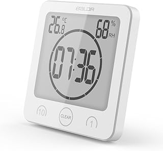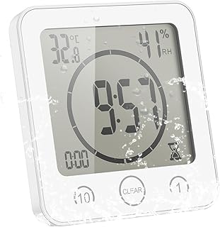 VORRINC Horloge de Salle de Bain Minuteries étanche Thermomètre Intérieur Hygromètre pour Salle De Bain Douche Maquillage Cuisine (Blanc)