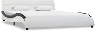 vidaXL Cadre de Lit avec LED Lit Rembourré Lit Double Lit Adulte Lit Coffre Sommier à Lattes Chambre à Coucher Maison Intérieur Blanc et Noir Similicuir 160x200 cm