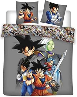 Housse de Couette Dragon Ball Z, Edition Collector, Gris foncé, Réversible, 220x240cm, 2 Personnes, 100% Coton