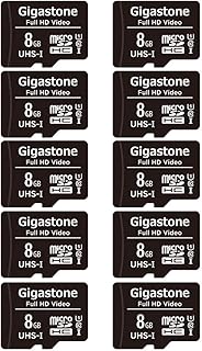 Gigastone Carte Mémoire 8 Go Lot de 10 cartes, Haute Vitesse de Lecture allant jusqu'à 80 Mo/s. idéal pour Portable Full HD Vidéo Caméra Drone, U1 C10 Carte Micro SDHC avec 4 étuis et 2 adaptateurs SD