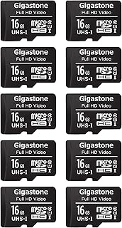 Gigastone Carte Mémoire 16 Go Lot de 10 Cartes, Haute Vitesse de Lecture allant jusqu'à 85 Mo/s. idéal pour Switch Full HD Vidéo Caméra Drone, U1 C10 Carte Micro SDHC avec 4 étuis et 2 adaptateurs SD