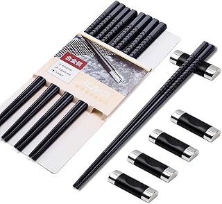 TaimeiMao 5 Paires Baguettes,Baguettes en Alliage Noir,Baguettes en Alliage de Haute qualité,Baguettes lavables au Lave-Vaisselle,Baguettes japonaises,Baguettes réutilisables,Baguettes lavables (A)
