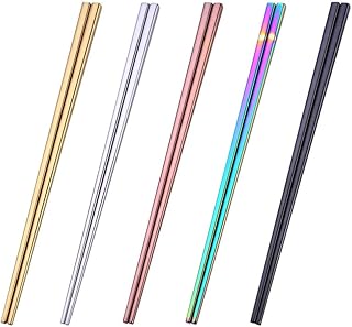 Ensemble de Baguettes en Métal, 5 Paires de Baguettes en Acier Inoxydable 304 Réutilisables, Baguettes Légères Multicolores Polies pour la Cuisine Traditionnelle à la Maison
