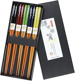 Gerhannery Japonais Baguettes Réutilisables Bois Baguettes 5 Paires Lavables en Bambou Baguettes Chinoises en Bois Lot de Baguettes Cadeau fait à la main - Poissons