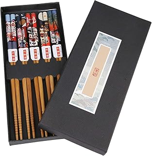 5 Paires/Ensemble de Baguettes Baguettes en Bambou de première qualité Baguettes réutilisables avec Style Japonais Pattrern Vaisselle Lavable Pratique avec boîte-Cadeau pour Magasin(Chat Chanceux)