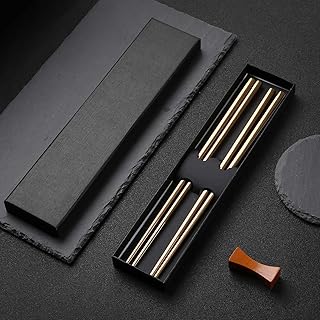 Hongyantech Baguettes de Baguettes japonaises en Or Rose de Style Classique réutilisables, 2 Paires de Baguettes de Haute qualité avec boîte, Ensemble-Cadeau de Valeur