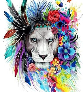 ParNarZar Diamant Peinture Complet, Lion coloré 40 x 40 cm, Peinture numéro Adulte Broderie Diamant Animaux Kit Diamond Painting 5D Strass Image Artisanat pour la Décoration Murale À La Maison