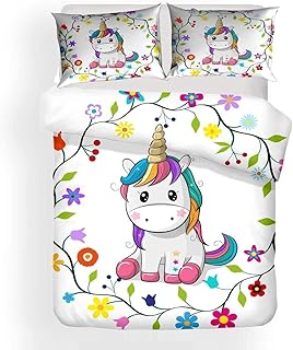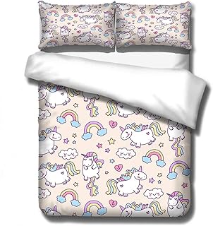KIACIYA Housse de Couette Licorne Fille 135x200 cm Parure de Lit Licorne Enfant Motif 3D Housse Couette avec Fermeture Éclair- Sets de Housse Couette avec 2 Taies d'oreiller (7,135x200cm)