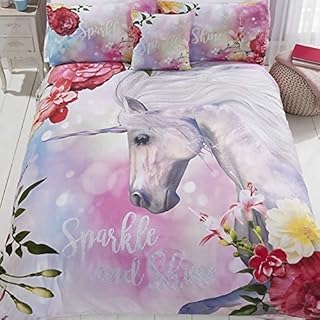 Sparkle And Shine Parure de lit avec Housse de Couette et 2 taies d'oreiller Motif Licorne Multicolore King Size