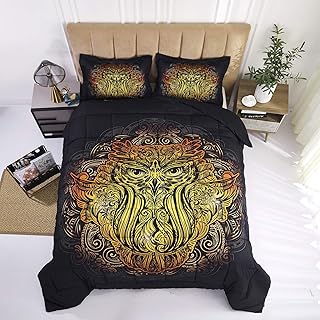 HIG Parure de lit 3 pièces avec housse de couette et 2 taies d'oreiller assorties Motif hiboux