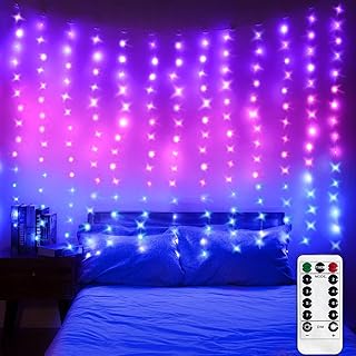 Lumières de Rideau de Fenêtre à LED, Lumières de Toile de Fond Photo Guirlande Lumineuse Scintillante avec Télécommande pour Décorations de Noël Mariage Chambre (Violet Rose Bleu, 6.8 x 5 ft)