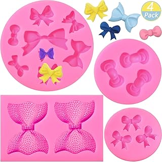 4 Pièces Moules à Fondant d’Arc en Silicone Moules de Noeud à Fondant Chocolat Bonbons Moule d’Arc en Silicone DIY Moules à Gâteau pour Fournitures de Gâteau Cupcake de Fête d'Anniversaire, 4 Styles