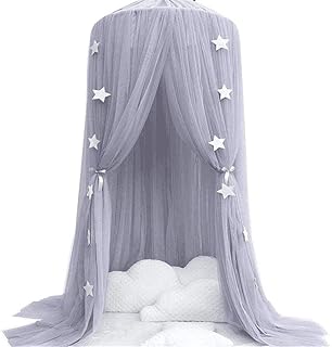 Koomiao Ciel de Lit Fille Princesse, Enfants lit Baldaquin avec Etoile Décoration de Chambre D'enfant en Forme de Dôme Moustiquaire en Maille Respirante pour Bébé (Gris)