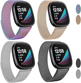 Wanme Bracelet Compatible avec Fitbit Versa 3 Bracelet/Fitbit Sense Bracelet, 4 Pack Remplacement Sport en Silicone Souple Bracelets pour Femme Homme