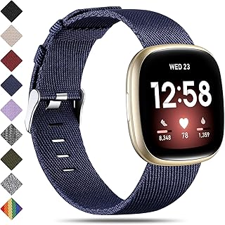 CeMiKa Tissé Bracelet Compatible avec Fitbit Sense/Fitbit Versa 3 Bracelet, Respirant Remplacement en Tissu Nylon Compatible avec Fitbit Sense/Versa 3 Bracelet pour Femme Homme, Petit Bleu